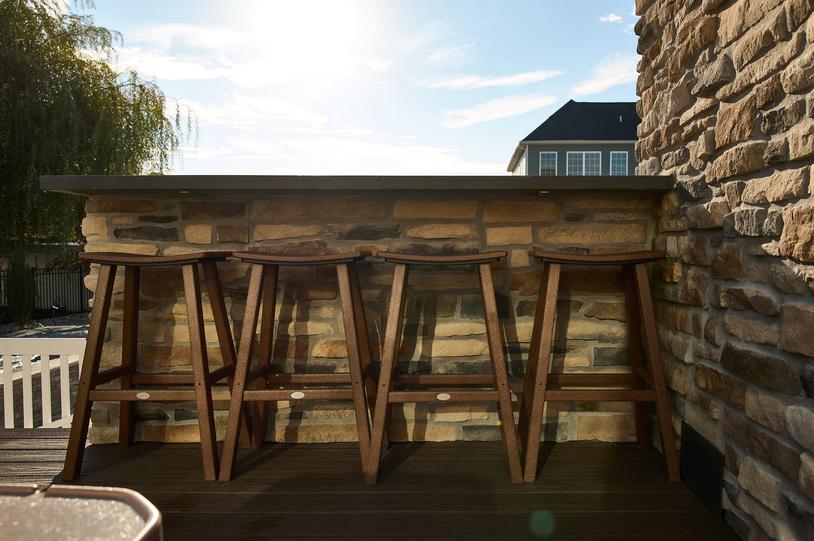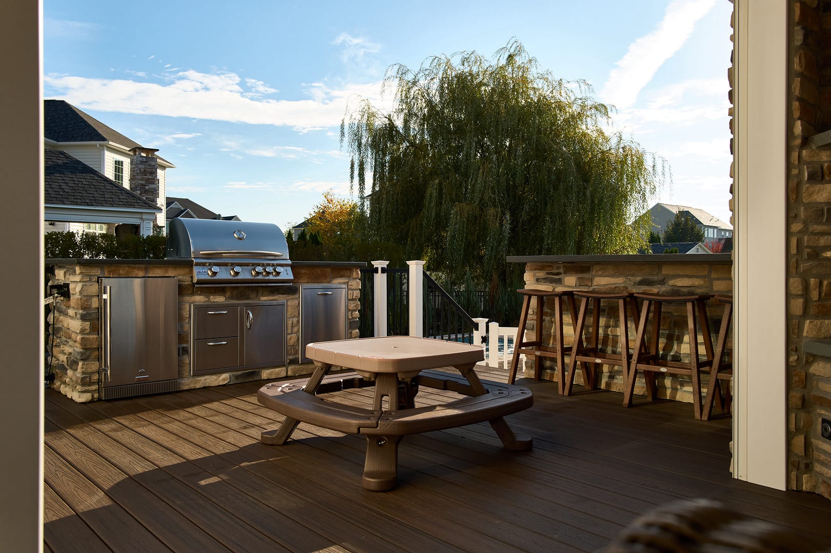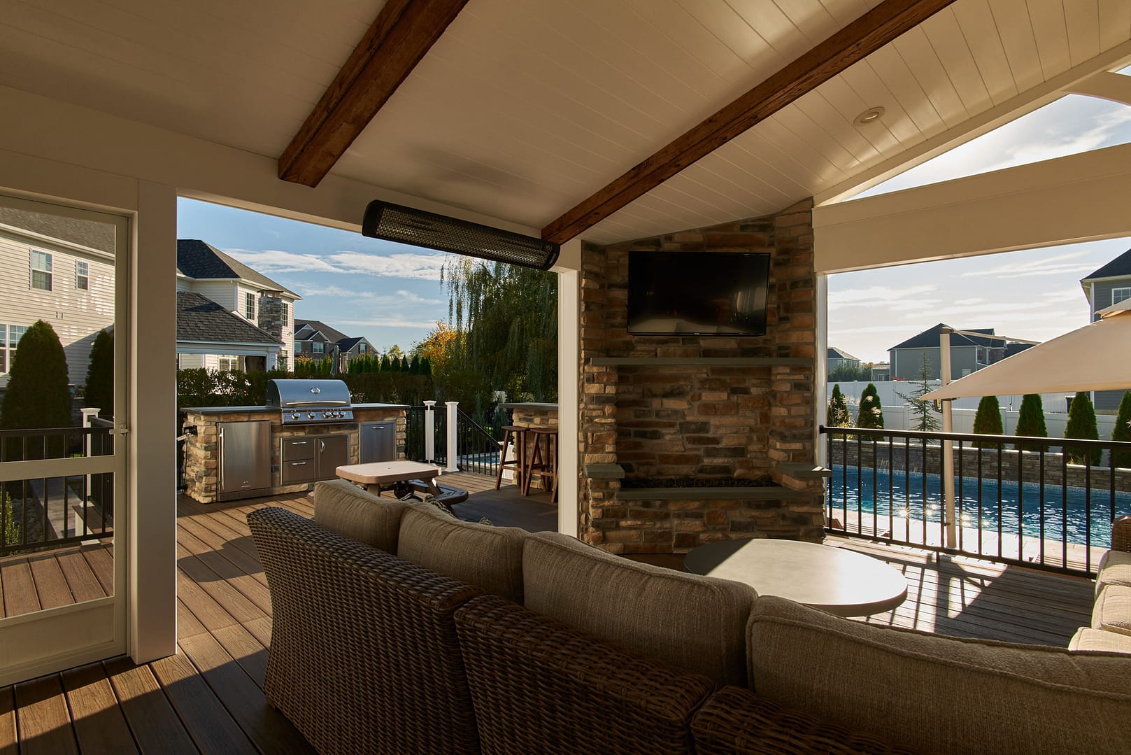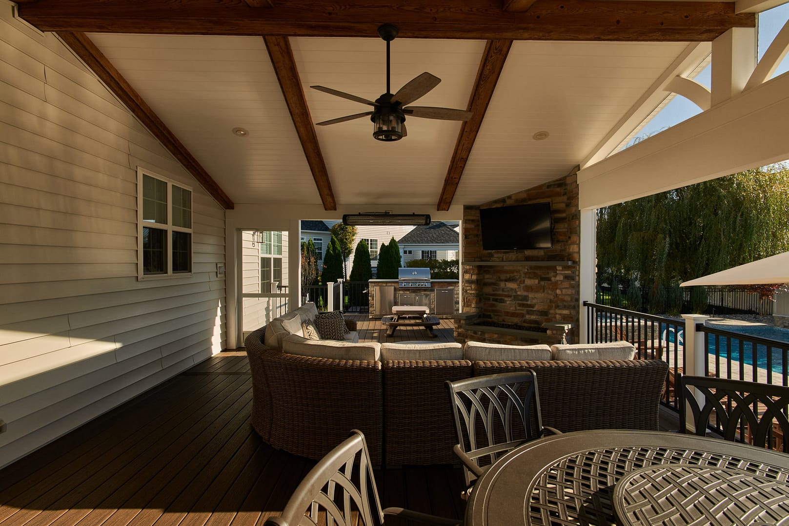 "We live outdoors from spring through fall. It’s our alternative to a shore house. The kids don’t have time for summer weeks or weekends at the shore. They love that they can invite more friends to come here and do it more often. And we all enjoy watching big games on TV."Homeowner